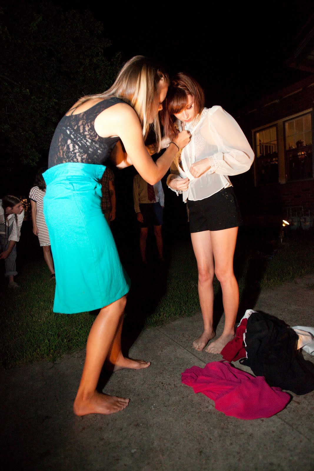It's been a little while since the Local Honey birthday party. It took me more than 2 months to get my hands on the fashion show pics since the Scene was holding on to them to include in the 2010 Fashion Issue. For those of you who weren't there... it was REALLY a fun show! SO HOT OUT and the yard was packed arm to arm, but not a complaint to be heard once the underwear clad models started walking down the runway. The goal was to present a show as unconventional as our style. We went with a concept based on the all too familiar process of getting dressed... one piece at a time. I wish there was a video, but the pics are a nice documentation.
